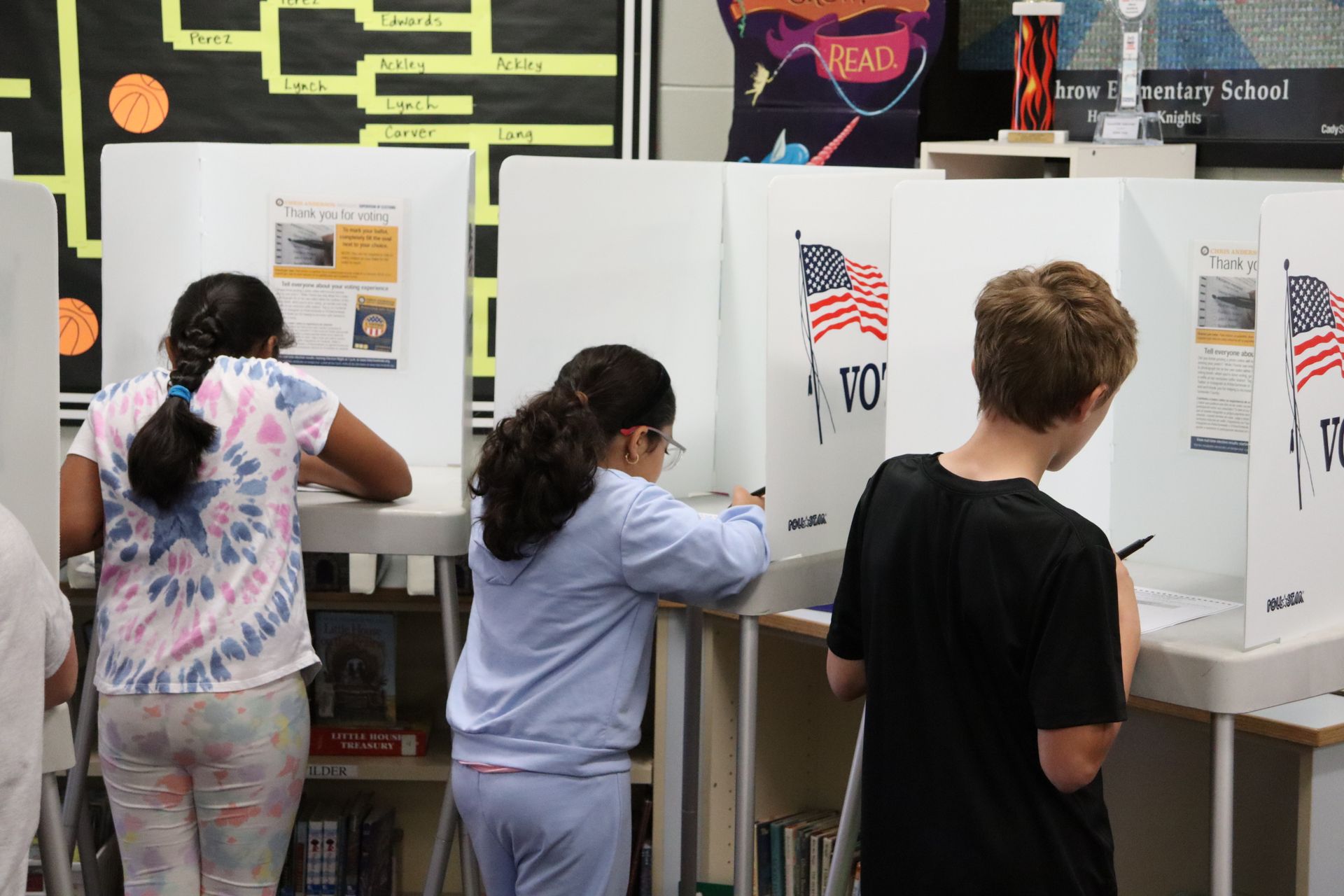 Today, the Seminole County Supervisor of Elections Office visited Heathrow Elementary School to conduct the Florida Association for Media in Education (FAME) Sunshine State Young Readers Award (SSYRA) and Sunshine State Young Readers Award Jr. program (SSYRA Jr.) election. 78 ballots were cast as students were able to vote for their favorite Sunshine State book.